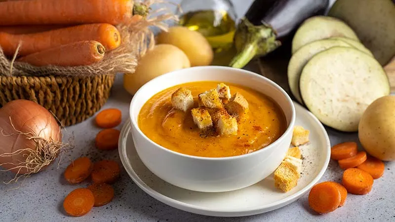 Crema di patate, carote e melanzane
