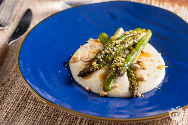 Asparagi su crema di ricotta e cannellini