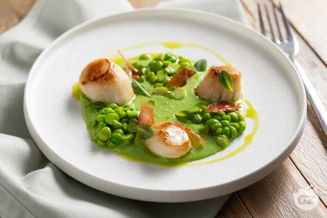 Capesante scottate su crema di piselli