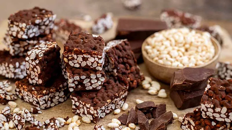 Barrette di cioccolato fondente e riso soffiato
