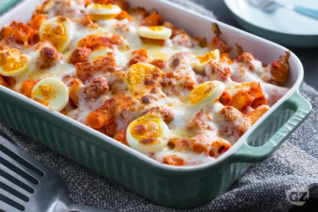 La magia risiede nell'equilibrio degli strati: i rigatoni, cattura-sugo per eccellenza, imprigionano il ragù di manzo dal fondo bruno e intenso, mentre la besciamella, arricchita dalla noce moscata, ne ammorbidisce il carattere con una cremosità lattea. Il contrasto finale è affidato ai formaggi: la scamorza filante scioglie il suo sentore affumicato, mentre il Parmigiano Reggiano gratinato offre la nota sapida e la croccantezza irresistibile della superficie. Perfetta per una domenica in famiglia o per un pranzo con gli amici, questa preparazione ha il pregio di poter essere assemblata in anticipo, per poi sprigionare in forno tutto il suo tripudio di aromi, trasformando il momento del servizio in uno spettacolo di convivialità.