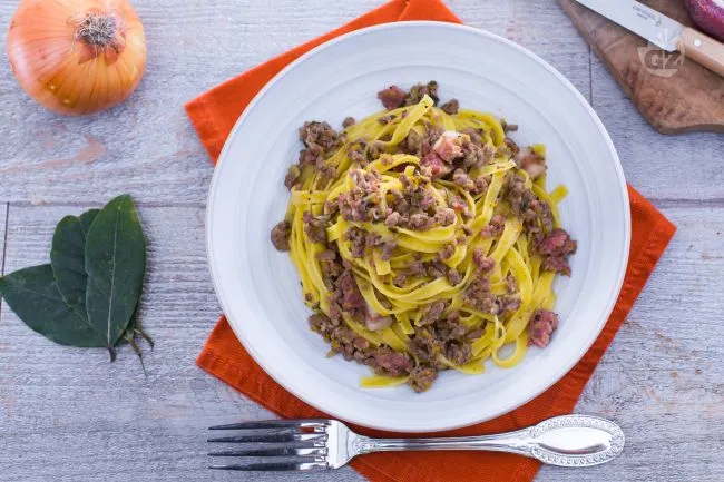 La magia risiede nel contrasto: la doratura porosa delle tagliatelle all'uovo, capace di trattenere ogni goccia di sugo, incontra la complessità terrosa del ragù. Qui, la dolcezza caramellata della pancetta e della salsiccia si fonde con il fondo tostato del manzo, mentre il vino bianco e il trito aromatico donano una nota di freschezza che alleggerisce la ricchezza, senza mai sopraffarla.