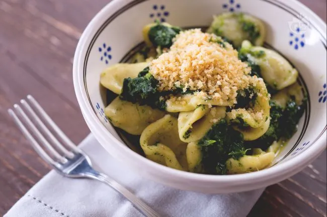 La semola di grano duro, lavorata con maestria, dà vita a quelle piccole concavità che non sono solo forma, ma veri e propri scrigni pronti a catturare l'anima del condimento. L'aglio dorato e le acciughe dissolte fondano un fondo sapido e profumato, mentre l'olio extravergine, fruttato e pungente, ne esalta ogni nota con un filo d'oro liquido.