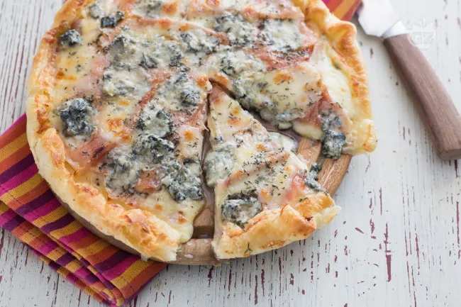 Al taglio, si rivela un cuore cremoso e filante dove il carattere deciso del Gorgonzola piccante viene ammorbidito dalla dolcezza della Scamorza, mentre il Groviera dona struttura e il Parmigiano Reggiano una nota sapida e profumata. Il prosciutto cotto, avvolto in questo manto di formaggi, aggiunge morbidezza e un tocco di dolcezza salata, esaltato dalle note terrose del timo e della salvia che ricordano un giardino aromatico.