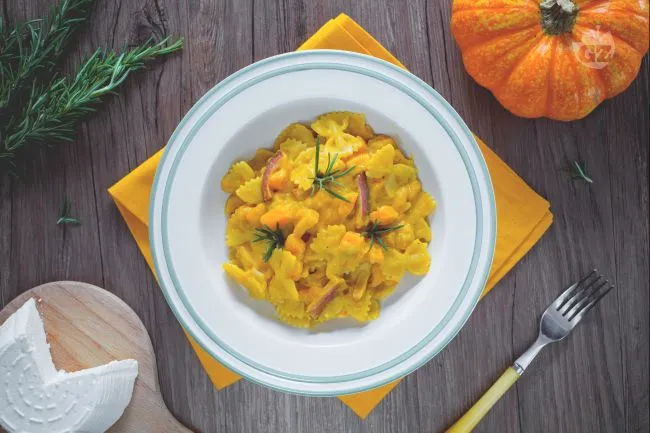 La magia risiede nella dialettica tra la zucca, ridotta in una salsa setosa che culla la pasta, e la pancetta croccante, il cui guizzo salino smorza ogni possibile stucchevolezza. I semi tostati aggiungono una nota rustica e una piacevole resistenza, mentre il rosmarino fresco, sfrigolato nell'olio, lega il tutto con il suo profumo balsamico e pungente. Perfetta per una cena informale che ambisce all'eleganza, questa ricetta unisce la praticità di una preparazione lineare al risultato di un piatto complesso e appagante, che lascia nel palato il calore del pepe e la memoria dolce della zucca.