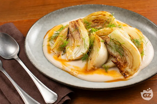 Un dialogo di delicatezze che conquista il palato: i finocchi, resi teneri da una lenta brasatura, si adagiano su una crema di cannellini dalla consistenza setosa. Il piatto promette un'esperienza di sapori puliti e ben definiti, dove l'eleganza nasce dalla semplicità delle materie prime trattate con rispetto. La riduzione d'arancia non è un semplice accompagnamento, ma il filo conduttore agrumato che cuce insieme le note dolciastri del finocchio e la rustica profondità dei legumi.