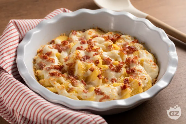la delicatezza del semolino incontra l'audacia di una gratinatura dorata, creando un equilibrio perfetto tra comfort food e eleganza rustica. La magia risiede nella stratificazione: ogni strato di gnocchi diventa il palcoscenico per una besciamella vellutata e il tocco sapido del prosciutto cotto.