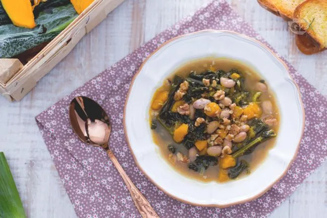 Questa zuppa autunnale è un abbraccio di sapori profondi e terrosi, dove la dolcezza carnosa della zucca dialoga con la rusticità del cavolo nero in un equilibrio che promette conforto e carattere. È una promessa culinaria che si realizza in ogni cucchiaio, avvolgendo il palato con la sua generosità e il calore tipico delle giornate che si accorciano.