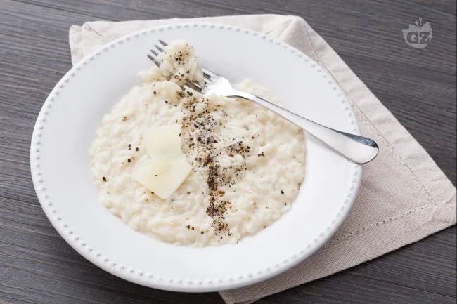 Il risotto cacio e pepe cremoso è un audace incontro tra l'eleganza lombarda e l'anima rustica della cucina romana, una promessa di comfort food raffinato che seduce con la sua doppia natura: vellutata e insieme vigorosa. Ogni boccone è un dialogo perfetto tra la delicatezza del riso Carnaroli, educato a rilasciare la sua cremosità, e il carattere deciso del pecorino, che impone la sua voce territoriale.