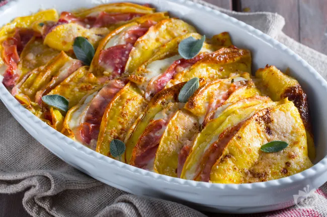 profondi e avvolgenti. Questa preparazione promette un viaggio sensoriale dal cuore morbido alla crosta dorata, dove ogni boccone bilancia ricchezza e delicatezza in un perfetto equilibrio al forno.
