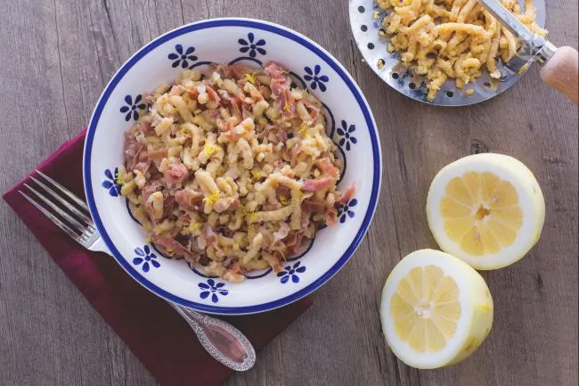 piatto dal carattere deciso, dove la rusticità incontra una squisita raffinatezza, capace di parlare sia ai palati tradizionali che a quelli in cerca di comfort food con un tocco distintivo. La magia risiede nel dialogo tra la pasta, dalla consistenza morbida ma con una leggera resistenza al dente, e l'intensità salata del prosciutto crudo che, rosolato nel burro, sprigiona note quasi caramellate.