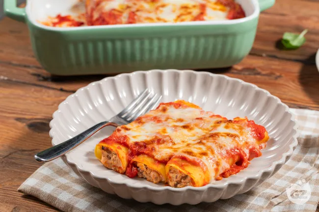 dove la ricchezza del ripieno si fonde con la rustica eleganza del sugo in un gratin dorato che invita alla tavola.