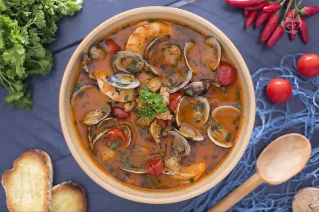 Un abbraccio di mare che cattura l'essenza della cucina costiera italiana, dove la generosità dei frutti di mare incontra la sapienza di una cottura rispettosa. Questa zuppa non è un semplice piatto, ma una promessa di profondità: il fumetto di crostacei che ne costituisce l'anima regala un sapore umami avvolgente, mentre il peperoncino fresco accende note vibranti che riscaldano il palato senza sopraffarlo.
