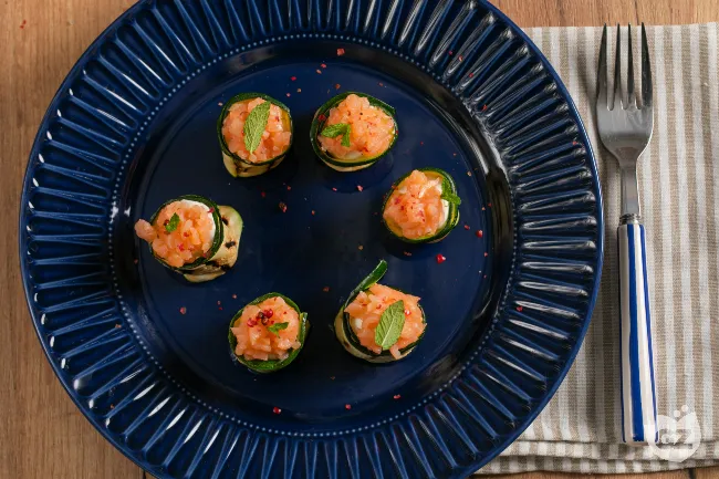 Il contrasto tra la freschezza erbacea della menta e la sapidità profumata del salmone affumicato crea un dialogo sensoriale raffinato, mentre il pepe rosa in grani aggiunge note floreali e una punta di dolce speziatura che completa il quadro. Perfetti per inaugurare una cena importante o per impreziosire un buffet, questi involtini racchiudono in un boccone l'essenza della cucina estiva italiana: apparentemente semplice, profondamente caratterizzata e memorabile.