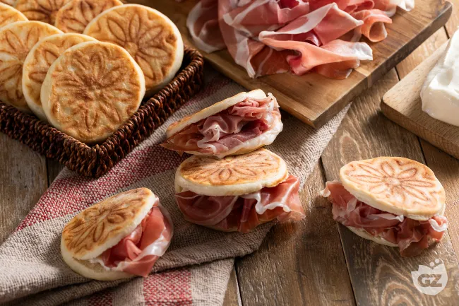 semplicità si trasforma in eleganza rustica. Queste focaccine morbide, dal cuore avvolgente, promettono un'esperienza che unisce la maestria artigianale al piacere immediato di sapori autentici e ben bilanciati. La magia risiede nel dialogo perfetto tra la crescenza, cremosa e delicatamente acidula, e il prosciutto crudo, sapido e avvolgente, che si fondono tra le due calde superfici dorate della tigella.