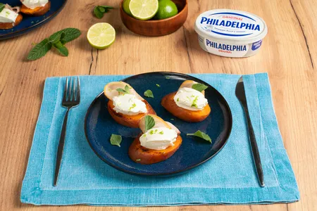 Un antipasto raffinato e sfizioso che unisce la dolcezza delle patate americane tostate, la cremosità del Philadelphia e il gusto deciso del pesce spada affumicato, arricchito da note fresche di lime e mentuccia.