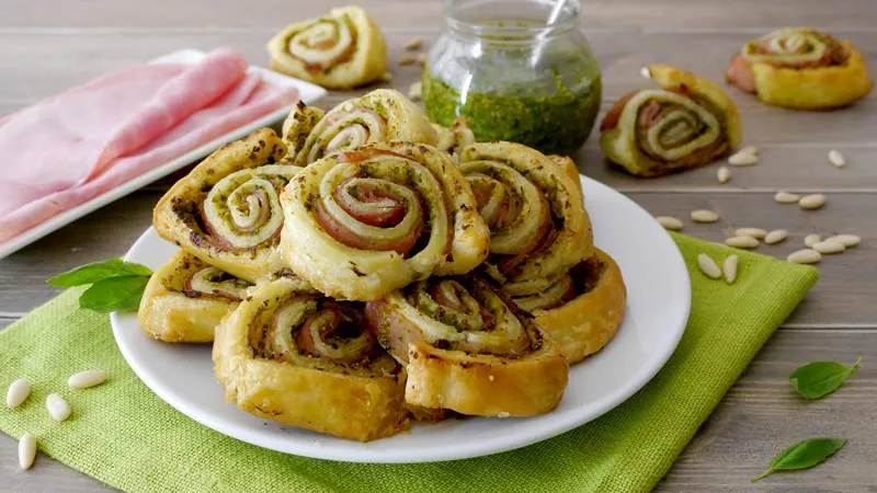 Le girelle al pesto con pasta sfoglia incarnano l'arte dell'antipasto italiano: un gioco di sapori che unisce la rustica fragranza del forno alla freschezza mediterranea. Ogni boccone promette un'esplosione di carattere, dove la semplicità degli ingredienti si trasforma in un'esperienza culinaria raffinata e sorprendentemente coinvolgente.