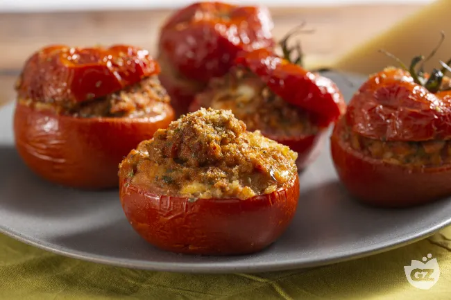 Perfetti come antipasto caldo che non teme di essere servito a temperatura ambiente, questi pomodori incarnano l'essenza della cucina conviviale: si preparano con anticipo, guadagnando carattere, e si offrono come un dono ricco di gusto, capace di aprire con eleganza qualsiasi pasto.
