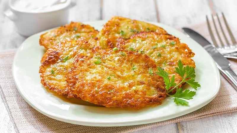 per rivelare un cuore tenero e vellutato. Questi pancake non sono un semplice contorno, ma una promessa di comfort food elegante, dove la semplicità degli ingredienti si sublima in una texture complessa e appagante. La magia risiede nel contrasto tra l'esterno croccante, reso dorato e quasi traforato dall'olio di arachidi, e l'interno morbidamente compatto delle patate grattugiate.