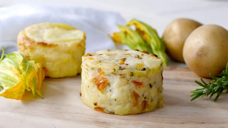 Serviti caldi, con gli aghi di rosmarino a donare un ultimo tocco balsamico, questi tortini sono versatili: conquistano come antipasto raffinato o si propongono come secondo piatto confortante. La loro eleganza discreta li rende adatti sia a una cena informale che a un pranzo dove si vuole stupire con semplicità.