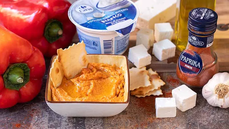 Il segreto risiede nel matrimonio tra la dolcezza caramellata dei peperoni arrostiti, con le loro note quasi affumicate, e la sapiente acidità della feta che si scioglie in controcanto allo yogurt greco. L'aglio, discreto ma presente, e un filo d'olio extravergine a crudo tessono un equilibrio perfetto tra ricchezza e freschezza, mentre la paprica forte aggiunge un guizzo finale, un calore che riscalda senza sopraffare.