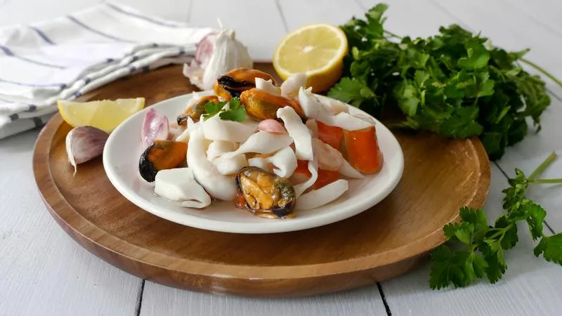 Il polpo, cotto con maestria fino a raggiungere quella tenera consistenza che cede al morso, dialoga con le cozze che spalancano le loro valve rilasciando un liquore salmastro. L'aglio e il prezzemolo non sono semplici aromi, ma architetti di carattere, mentre il limone non acidula ma illumina, creando un equilibrio perfetto con l'olio extravergine che avvolge ogni elemento con un abbraccio fruttato.