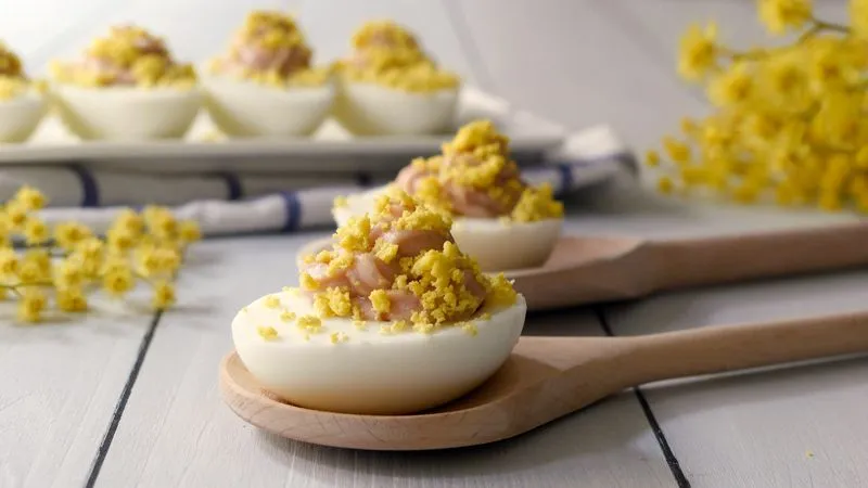 Perfette per un buffet raffinato o un aperitivo speciale, queste uova mimosa conquistano non solo per il gusto ma per la loro eleganza visiva: piccole gemme bianche e gialle che diventano protagoniste della tavola, dimostrando come la tradizione possa vestirsi di contemporaneità senza perdere la sua anima autentica.