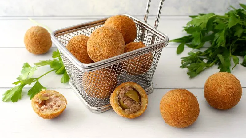 Il segreto risiede nell'armonia delle carni miste – maiale, vitello e pollo – che, lentamente stufate con sedano, carota e cipolla sfumate dal vino bianco, sviluppano una profondità umami avvolta dalla freschezza del prezzemolo tritato. L'esterno, dorato e fragrante, custodisce un cuore morbidamente saporito, dove il grasso del burro e l'olio extravergine completano la texture in un abbraccio indimenticabile. Perfette per inaugurare una cena importante o per trasformare un aperitivo in un momento di convivialità memorabile, queste olive ripiene conquistano per la loro eleganza rustica e la capacità di unire semplicità e raffinatezza in un solo, irresistibile morso.