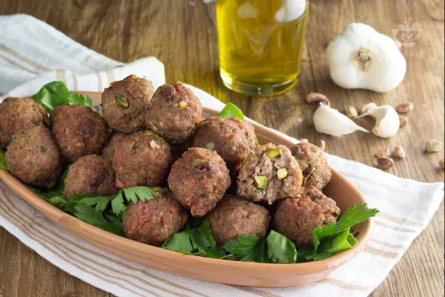 La magia avviene quando i pistacchi croccanti interrompono con la loro nota tostata la cremosità del Grana Padano, mentre il prezzemolo fresco e l'aglio lieve regalano un'armonia di profumi mediterranei. La mortadella, tagliata a cubetti piuttosto che tritata, si scioglie in cuore rilasciando il suo inconfondibile gusto speziato.