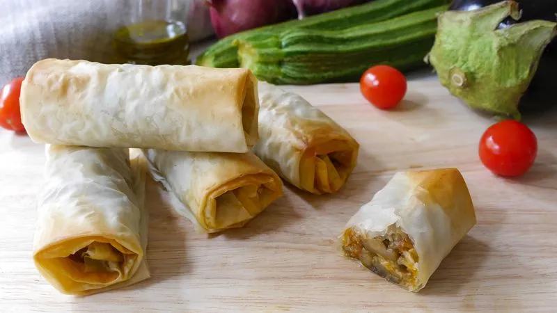 Un gioco di consistenze e sapori mediterranei racchiuso in una forma elegante e leggera. Questi involtini promettono un'esperienza dove la croccantezza dorata della pasta fillo cede il passo a un cuore morbido e profumato, un concentrato d'estate che seduce al primo morso. È un piatto che parla di sapienza contadina rivista con un tocco di raffinatezza, perfetto per chi cerca vegetale senza rinunciare al carattere.