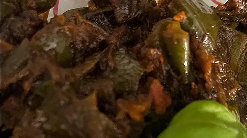 La magia risiede nella doppia cottura: i friggitelli prima conquistano una croccantezza dorata e leggera, quasi una corazza sottile, per poi abbandonarsi alla lenta stufatura nel sugo. Qui, l'aglio sfrigola rilasciando note aromatiche profonde che si sposano con l'acidità vibrante della polpa di pomodoro, mentre le foglie di basilico, aggiunte a fuoco spento, sigillano il piatto con un fresco tocco erbaceo.