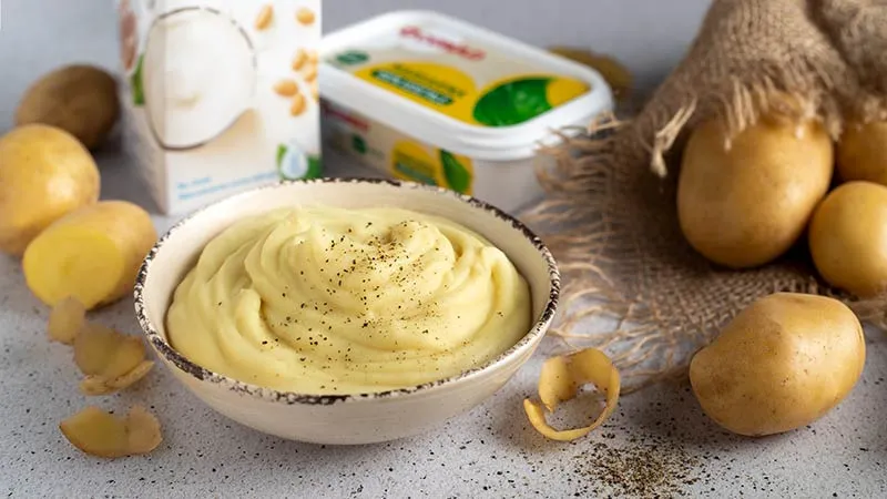 Il segreto risiede nell'equilibrio tra l'amido rustico delle patate, cotte al punto giusto, e la dolcezza lieve del latte vegetale, che si fonde in un abbraccio con il tocco burroso della margarina. Il sale fino, dosato con precisione, non sala semplicemente, ma esalta ogni nota, regalando un finale pulito e appagante. Il risultato è una texture setosa che avvolge il palato, priva di quella pesantezza che spesso accompagna le versioni tradizionali.