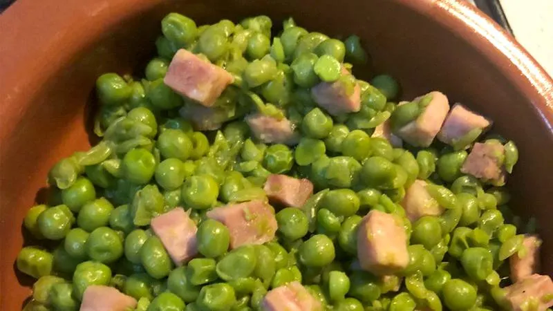 La magia nasce dal dialogo perfetto tra la dolcezza burrosa dei piselli, colti al punto giusto di tenerezza, e le note sapide e morbide del prosciutto cotto, che si sfalda in bocca. L'aglio, soffritto con parsimonia, non invade ma accarezza il palato, mentre un fondo di cottura profumato dal dado vegetale lega il tutto in una cremosità leggera, appena percettibile.