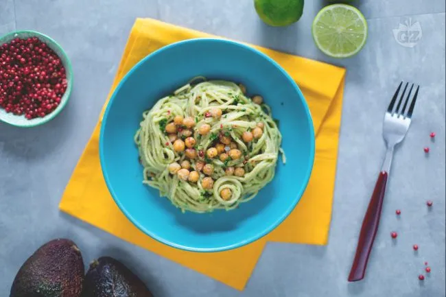 La magia risiede nel dialogo tra texture: la crema di avocado, lavorata fino a diventare una seta leggermente acidula dal lime, avvolge ogni singolo spaghetto con un abbraccio delicato. Contro questa morbidezza si erge l'esplosione dei ceci croccanti, dorati e speziati, che offrono un contrappunto tattile irresistibile e una nota tostata profonda.