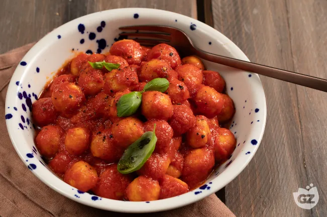 La magia risiede nel contrasto tra la rustica dolcezza del pane ammorbidito dal latte e la grintosa sapidità del Grana Padano, mentre la noce moscata aggiunge un soffio caldo e avvolgente. Questo equilibrio trova il suo perfetto contrappunto in un sugo di pomodoro essenziale, dove l'aglio sfrigola appena per rilasciare un profumo penetrante, poi si ammorbidisce, e il basilico fresco spezza con una nota erbacea la ricchezza degli gnocchi.