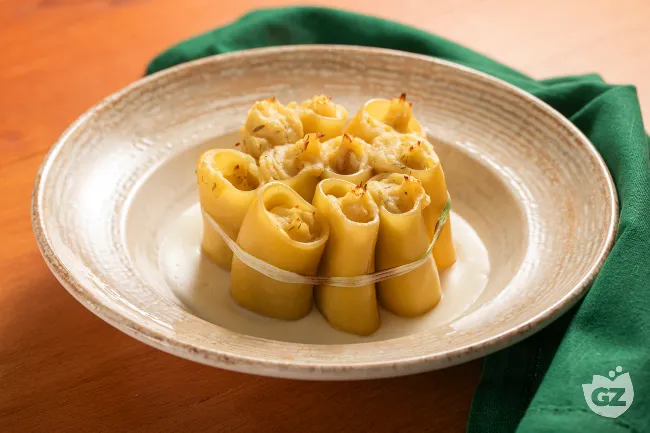 Un abbraccio di sapori del Nord che si incontrano nel calore di un piatto unico, dove la maestositĂ della pasta incontra la delicatezza del mare. I Paccheri ripieni di baccalĂ con fonduta di Asiago promettono un viaggio sensoriale tra consistenze cremose e note sapide, un equilibrio perfetto tra ricchezza e raffinatezza che conquista al primo boccone.