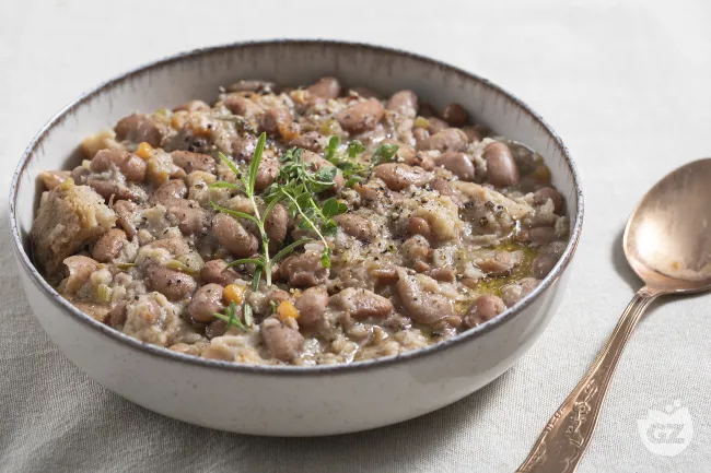 Il pancotto con fagioli borlotti è un abbraccio di sapori che trasforma l'umiltà degli avanzi in una promessa di comfort autentico. Questa zuppa non si limita a riscaldare il palato, ma racconta una storia di sapienza contadina dove ogni ingrediente trova la sua perfetta redenzione, creando un piatto dal carattere rustico ma sorprendentemente elegante.