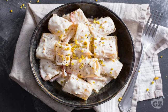 I paccheri cremosi con guanciale e pistacchio sono un'ode alla generosità della cucina italiana, dove l'abbondanza si veste di eleganza. Questo piatto promette un'esperienza tattile e gustativa inconfondibile: la pasta, avvolta in una nube di formaggio, diventa il veicolo perfetto per sapori decisi e contrasti audaci.