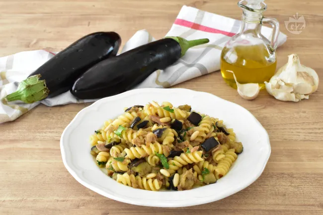 La magia risiede nei contrasti: i cubetti di melanzana, dorati e morbidamente carnosi, cedono alla forchetta accanto alla consistenza sfilacciata e soda del tonno, mentre i pinoli tostati regalano scoppi di croccantezza che esaltano ogni boccone. L'aglio e la cipolla ramata, appena traslucidi, tessono una base aromatica che lega il tutto, completata dal fresco guizzo del prezzemolo tritato al momento.