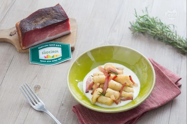 La magia nasce dal contrasto tra la fonduta, vellutata e intensamente profumata di formaggio stagionato, e lo speck croccante, che sfrigola leggermente in padella rilasciando aromi affumicati. Gli gnocchi, leggermente profumati di rosmarino, offrono una morbidezza delicata che cattura e lega ogni componente in un insieme armonioso.
