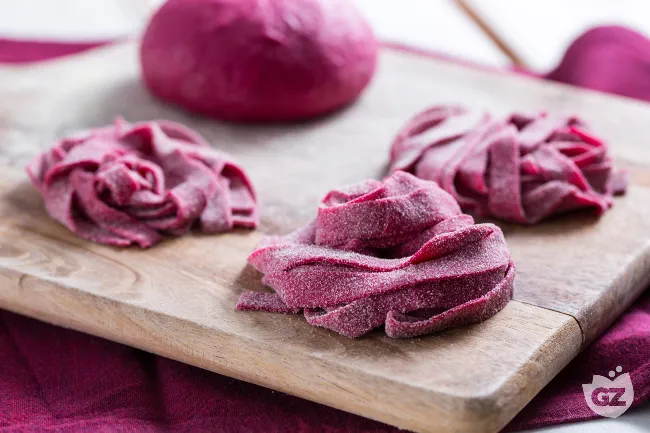consistenza setosa che accarezza il palato. Questa creazione artigianale non è solo un'esperienza visiva, ma un invito a un'abbinata perfetta con sughi che ne esaltino la natura gentile. La barbabietola, con la sua dolcezza terrosa, si fonde armoniosamente con la ricchezza dell'uovo, donando all'impasto una nota sottile che ricorda i campi al tramonto.