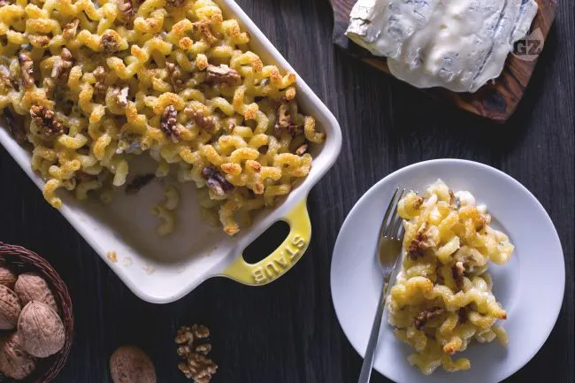 La magia risiede nell'equilibrio: la piccantezza erborinata del formaggio, stemperata dal latte, incontra la croccantezza terrosa dei gherigli di noci, mentre una doratura gratinata al forno sigilla il tutto con una piacevole nota tostata. Ogni boccone è un dialogo tra la morbidezza seducente della salsa e la struttura ruvida dei cellentani, perfetti per trattenere l'intensità del condimento. Ideale per una cena che vuole lasciare il segno, questo piatto unisce l'eleganza rustica alla praticità di una preparazione che culmina in forno, regalando in tavola quel calore e quella fragranza che trasformano il pasto in un momento memorabile.