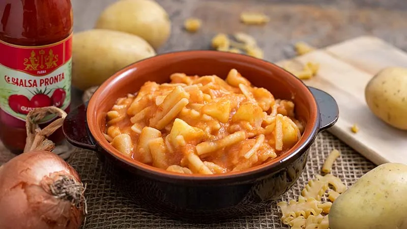avvolgente che culla la pasta senza bisogno di formaggi, dove l'amido delle patate diventa l'architetto di una salsa setosa e memorabile. Un piatto che parla di radici contadine con l'eleganza di una preparazione curata.
