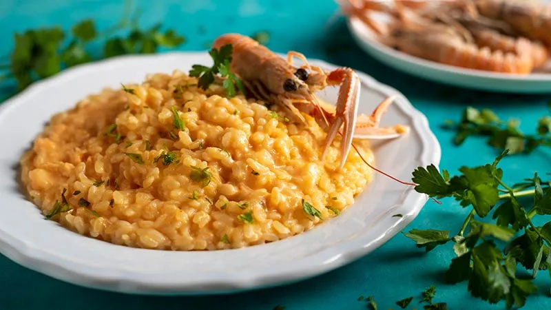 Il risotto agli scampi è un'ode alla sapienza culinaria italiana, dove la generosità del mare incontra la maestria della mantecatura. Promette un'esperienza di gusto che unisce la ricchezza dei crostacei alla setosità di un riso perfettamente cotto, in un abbraccio di sapori eleganti e profondi. È un piatto che parla di occasioni speciali senza bisogno di clamore, conquistando con la sua essenziale raffinatezza.