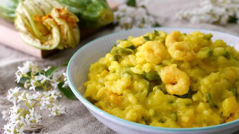 La magia nasce dal contrasto tra la tenerezza quasi burrosa delle zucchine, che si sfaldano in cottura rilasciando la loro essenza erbacea, e la consistenza soda ma delicata dei gamberetti, il cui succo si fonde con il fondo di cottura creando un brodo ricco di umami. Lo zafferano non è solo colore: è una spezia che apre il palato con le sue note terrose e leggermente amare, bilanciando perfettamente la dolcezza degli altri ingredienti.