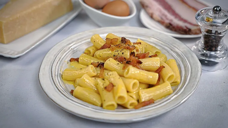 della tradizione. È il piatto che seduce con la sua apparente semplicità, per poi rivelare un equilibrio perfetto tra la grintosa sapidità del Pecorino e la ricchezza opulenta dei tuorli.