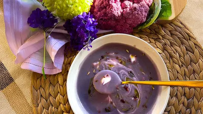 La crema di cavolfiore viola è un abbraccio invernale che seduce prima con il suo colore regale, poi con una complessità di sapori che sfida la semplicità delle sue origini contadine. Questa vellutata promette un viaggio sensoriale dove la dolcezza terrosa del cavolfiore si fonde con note minerali, creando un carattere robusto ma elegantemente equilibrato.