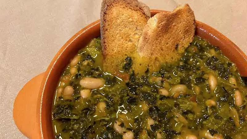 La magia sta nel dialogo tra la dolcezza carnosa delle carote e del porro e la nota terrosa e persistente del cavolo nero, mentre i fagioli cannellini, cremosi e delicati, tessono una trama corposa che sostiene l'intero piatto. L'olio extravergine a crudo, finale e non cotto, esplode in un tocco di fruttato e piccante che risveglia tutti gli aromi, creando un contrasto luminoso contro la ricca base di verdure.