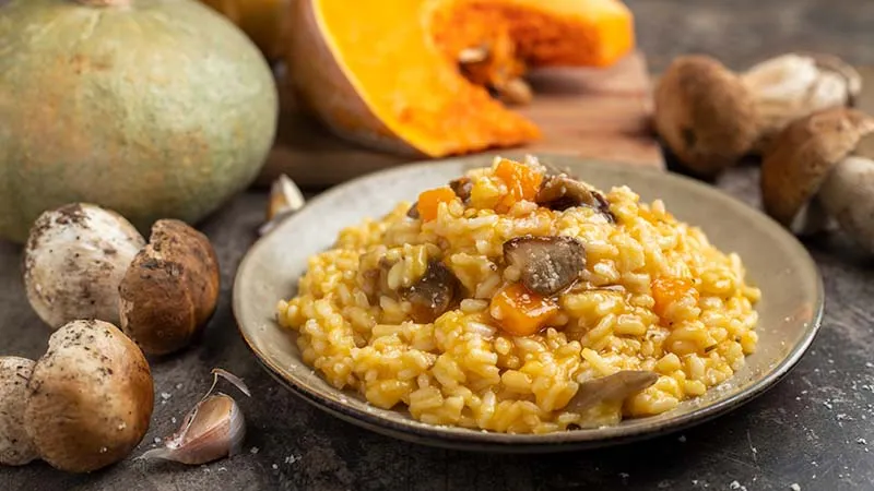 La magia nasce dall'incontro tra due ingredienti protagonisti: la zucca, che si sfalda in delicate note caramellate, e i funghi porcini, il cui profumo boschivo si sprigiona al primo contatto con il calore. L'olio extravergine e il burro finale non sono semplici grassi, ma alleati che legano i sapori, donando al palato una rotondità setosa e un retrogusto persistente di Parmigiano, lievemente sapido.