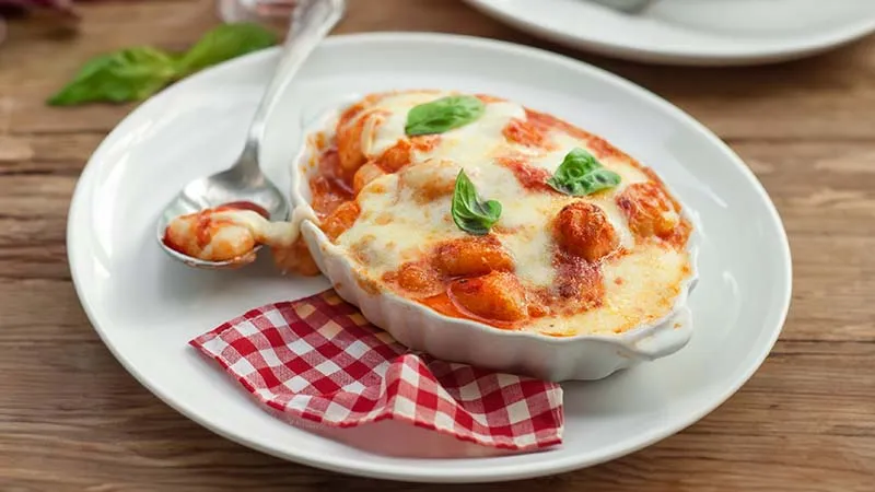 promessa è quella di un piatto che unisce la delicatezza degli gnocchi fatti in casa alla potenza avvolgente di un sugo semplice e di una doppia gratinatura che fonde i sapori in un'unica, irresistibile cremosità.